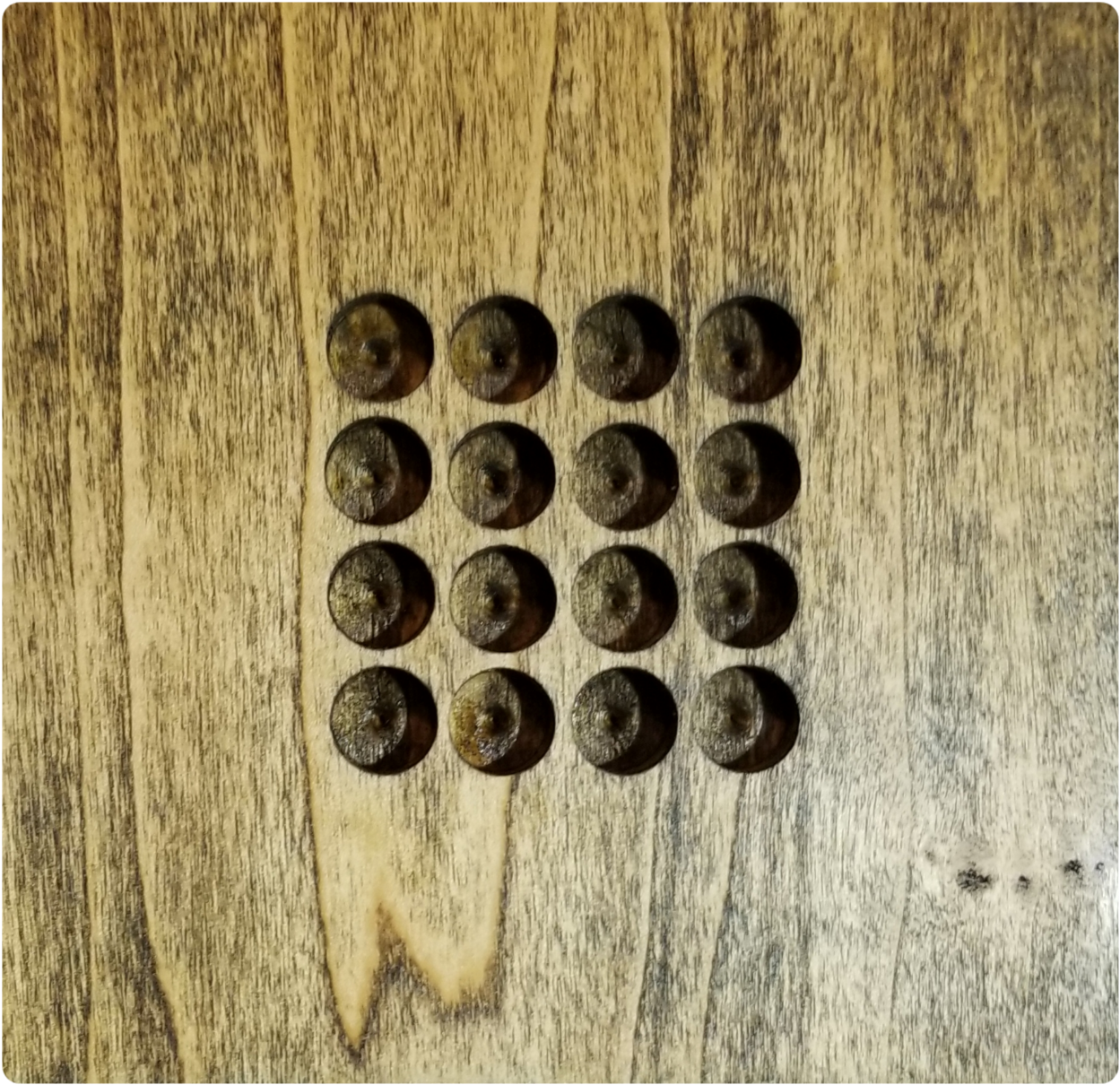 Sanded & Stained. Includes 2 sets of matching opaque marbles in a small cloth bag.